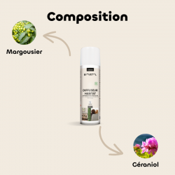 Substances actives : Géraniol* 4,87 g/L (CAS n° 106-24-1), Chrysanthemum cinerariaefolium, ext.* 0,6 g/L (CAS n° 89997-63-7). *Biocide classé TP18 (insecticide). Informations réglementaires selon (CE)1272/2008, (UE)528/2012, (CE) n°1451/2007. Fiche de données de sécurité sur demande.