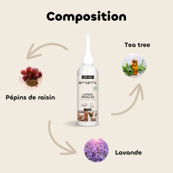 Qu’est ce qui se cache à l’intérieur des oreilles de vos chiens et chats ? Vous préférez ne pas savoir ? Offrez donc une beauté des oreilles à vos compagnons à 4 pattes. C’est le produit à avoir pour les propriétaires de chats et de chiens à oreilles tombantes et pas que, qui savent que l'élégance, ça commence par des oreilles propres et saines. BIOVETOL a pensé à l’hygiène des oreilles de vos animaux en créant une lotion certifiée par Ecocert Ecosoin des animaux.