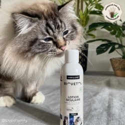 Adieu yeux de panda, bonjour au glamour ! Notre lotion oculaire BIOVETOL est le must-have pour une hygiène impeccable du contour des yeux, du museau et de la truffe de votre boule de poils préférée. C’est le produit à avoir pour les propriétaires de chats et de chiens à face aplatie et pas que, qui savent que l'élégance commence par des contours des yeux propres et sains. BIOVETOL a pensé à l’hygiène des contours des yeux de vos animaux en créant une lotion certifiée par Ecocert Ecosoin des animaux.