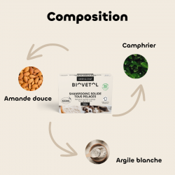 Ce shampooing solide BIOVETOL est équivalent à 500ml de shampooing liquide, de quoi profiter de ce produit jusqu’au bout des poils.