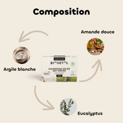 Votre animal adore aller dans les flaques et dans la boue et revenir avec une odeur désagréable ? Pas de panique, nous avons exactement ce qu'il vous faut : le shampooing anti-odeur Biovetol, certifié par Ecocert Ecosoin des animaux. Finies les mauvaises odeurs ! Son format solide est écologique et économique. Il consomme moins de matière plastique et contient plus de produit. Vous faites un petit geste pour la planète et votre portefeuille.