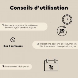 Il s’agit d’une cure de 30 jours à renouveler 3 fois par an si besoin pour maintenir les bienfaits.