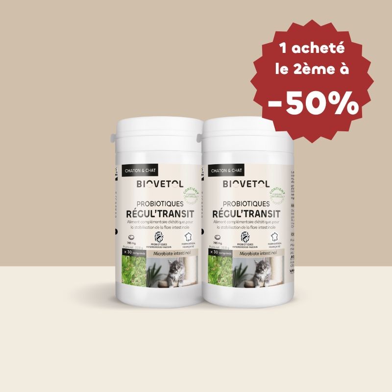Sa composition reconnue pour son action sur la flore intestinale, booste la digestion et chouchoute le système digestif de votre chat. Grâce à Régul'transit, votre boule de poils profitera d'une digestion au top, et vous pourrez dire adieu aux petits tracas intestinaux. Bref, c'est le ticket gagnant pour un chat en pleine forme et prêt à tout.