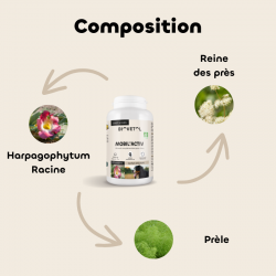 MALTODEXTRINE BIO*, HARPAGOPHYTUM BIO* (RACINE) 32%, REINE DES PRÈS BIO*(PARTIE AÉRIENNE), PRÊLE BIO*(PARTIE AÉRIENNE).