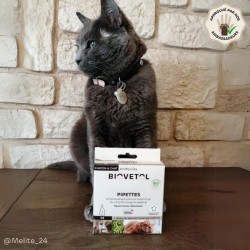Le bien-être de votre chat est préservé par l’action répulsive des pipettes BIOVETOL dès 8 semaines. Quelques gouttes sur sa peau suffisent pour une diffusion optimale, formant ainsi un film protecteur efficace pendant 1 mois. Pour vous, c’est l’assurance de prendre soin de votre animal avec un produit fait d’actifs BIO d’origine végétale.