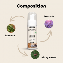 3. Massez délicatement le pelage de votre animal pour permettre à la mousse de pénétrer en profondeur et de déployer ses vertus nettoyantes et odorantes.